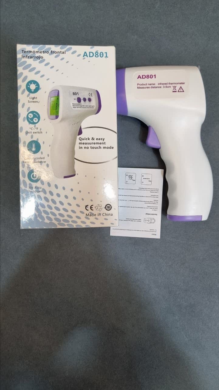 تبسنج مادون قرمز پیشانی مدل AD801 مناسب اندازهگیری بدون تماس دمای بدن از روی پیشانی در خانه، مطب و مراکز درمانی است.